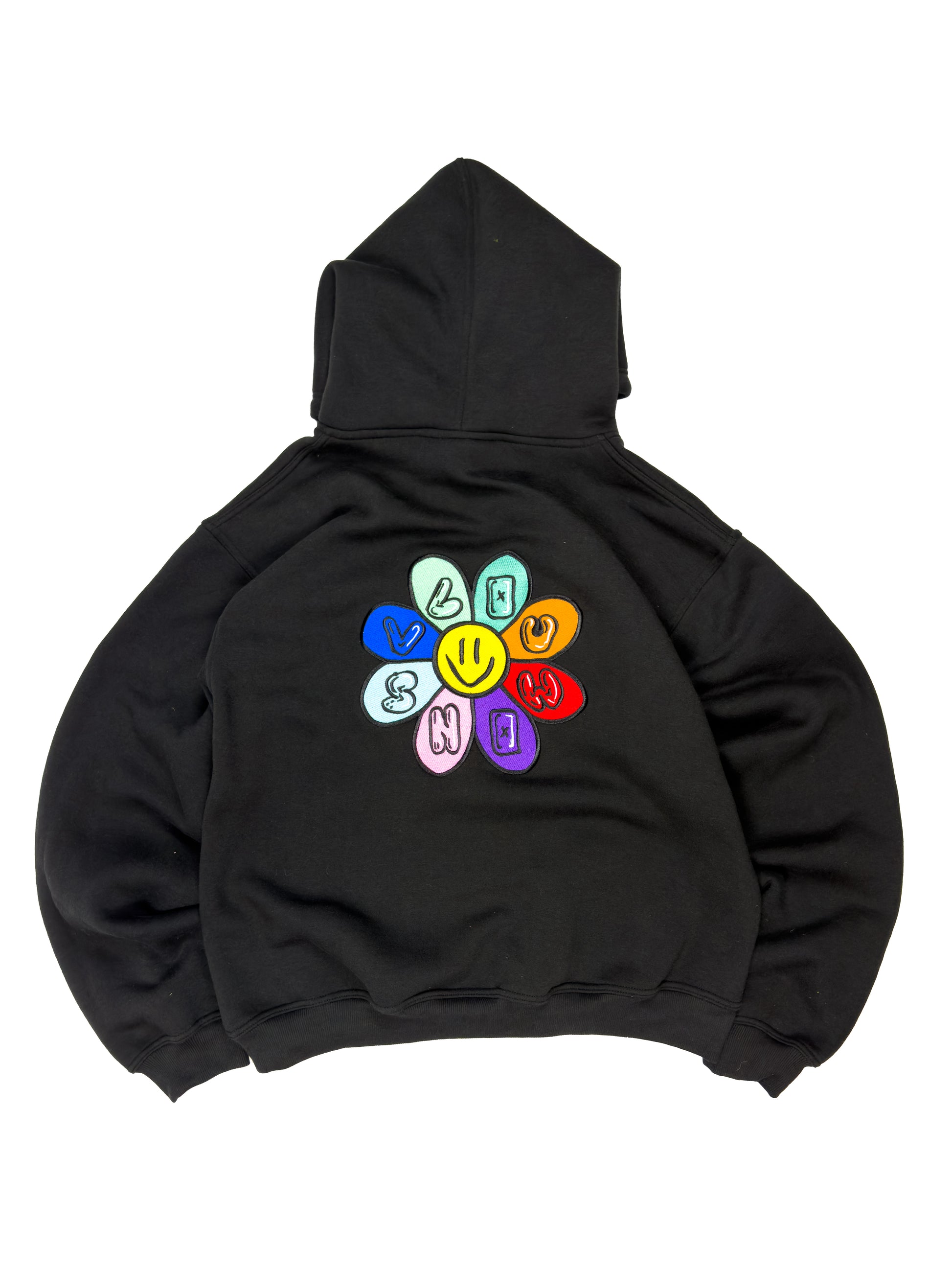 Built from a heavyweight 360 GSM 50/50 cotton-poly blend, the Art of Flowers Hoodie combines durability, warmth, and a soft feel. Features detailed embroidery on both the front and back, showcasing the VLOU flower graphic in vibrant color.
